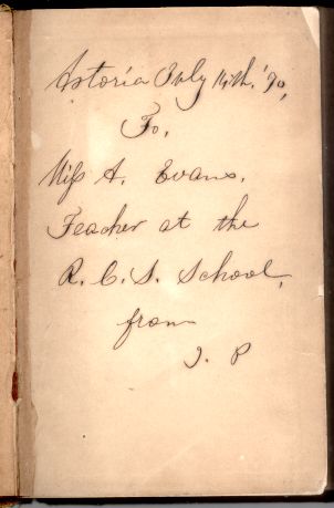 Book inscribed to Anna Evans in 1870. 4" x 6"