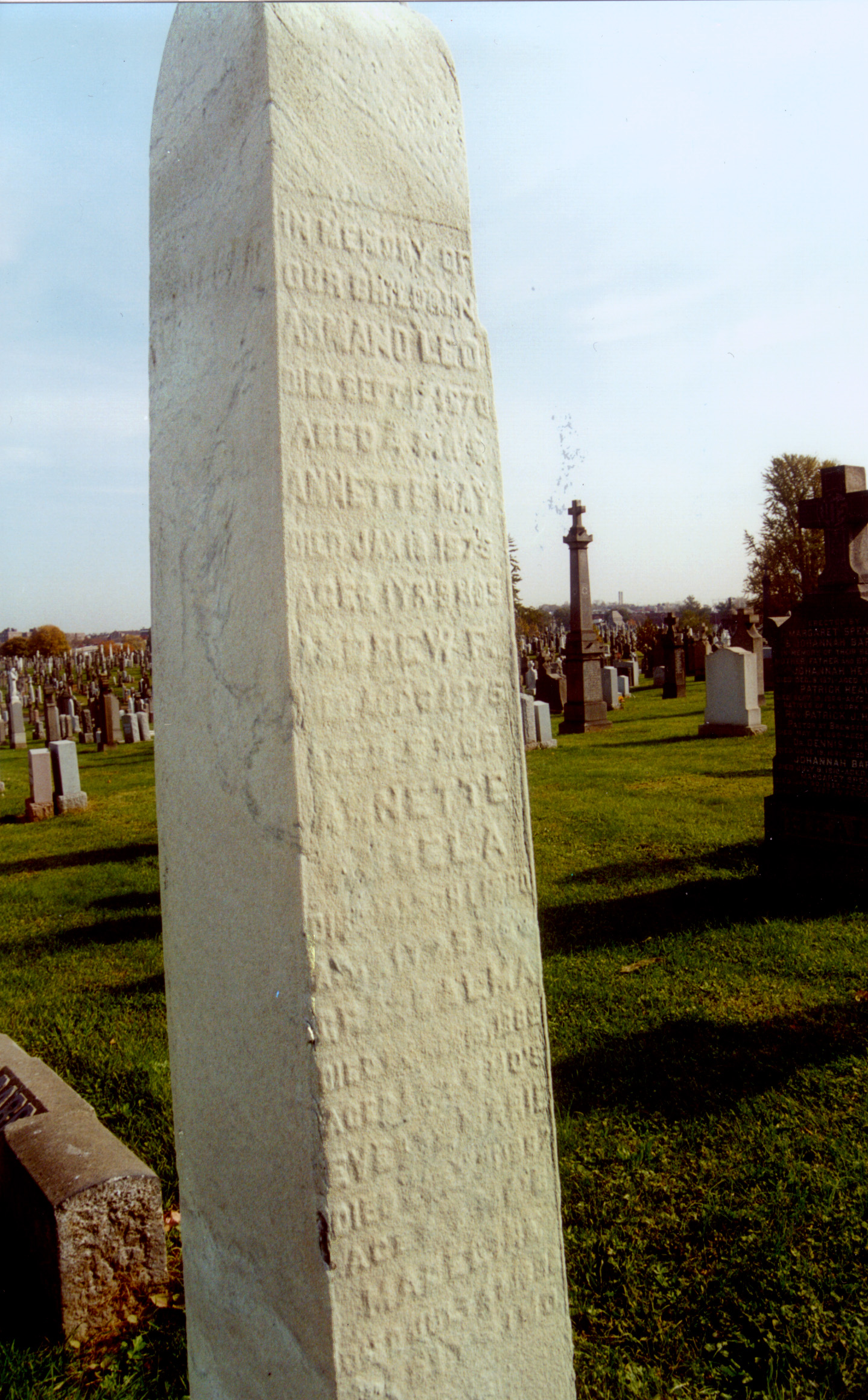 Photos of the Andrew Flanagan/Exertier gravestone at Calvary.