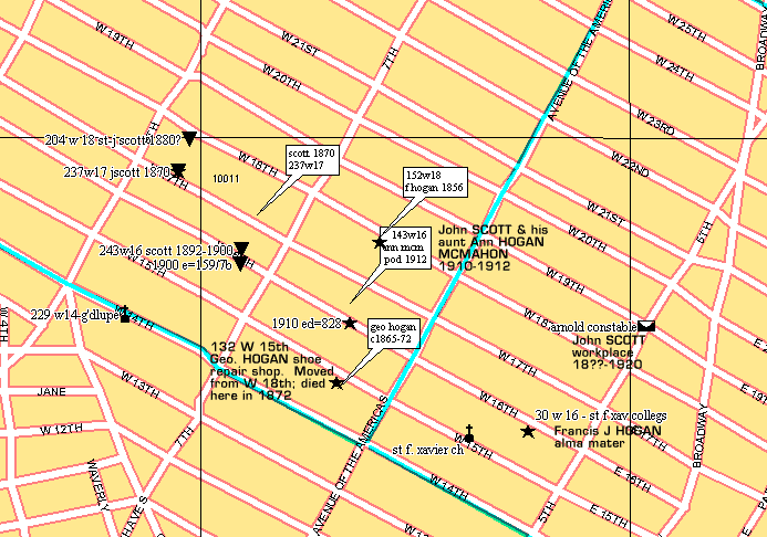 It was here that John SCOTT lived with his aunt, Ann HOGAN MCMAHON in 1910 and 1913