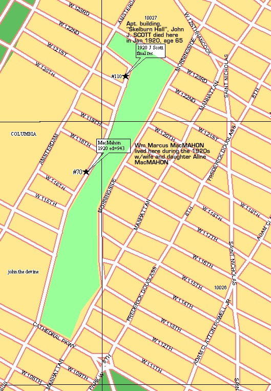 110 Morningside Drive was John J. SCOTT's residence at that time.